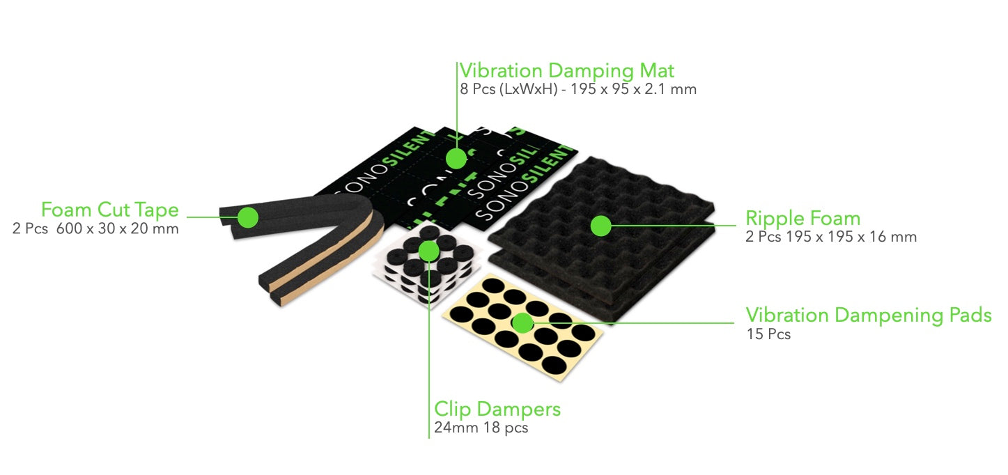 • Vibration Damping Mats (8 pcs – 195 x 95 x 2.2 mm)